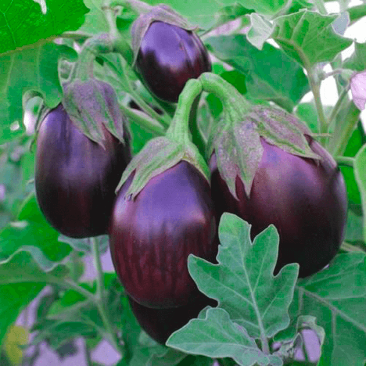 Planta de estación cálida que da frutos alargados de piel morada brillante. Se desarrolla exclusivamente en verano, con riego constante.