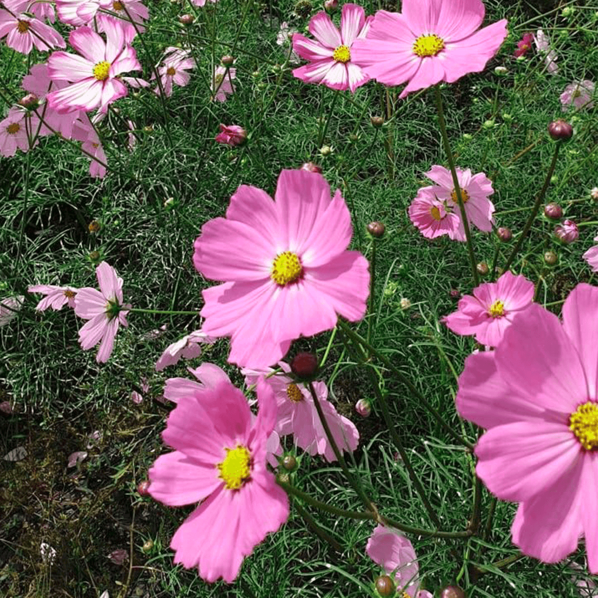 Flores livianas y coloridas que atraen abejas y mariposas. Se adaptan al suelo y florecen desde la primavera hasta el otoño.