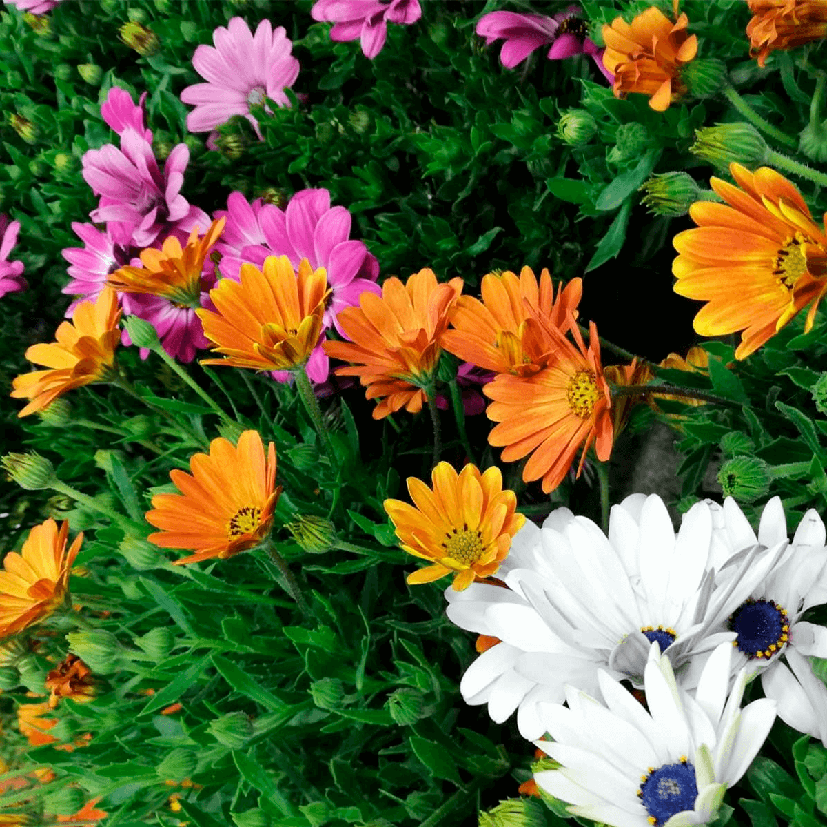 Planta rústica de flores similares a las margaritas, en tonos vibrantes. Tolera sequía y florece en primavera y verano.