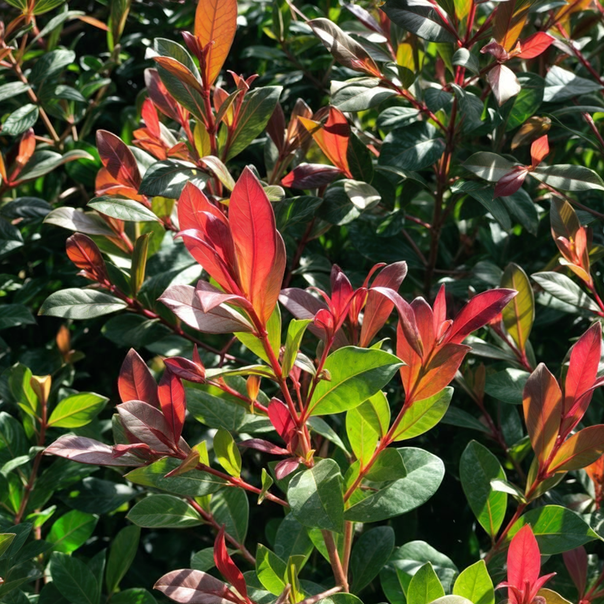 Rápido crecimiento y follaje siempre verde. Ideal para cercos vivos, ya que tolera bien la poda. Produce pequeñas flores blancas y frutos rojizos. Prefiere el sol pero se adapta bien a la sombra y requiere suelos bien drenados.