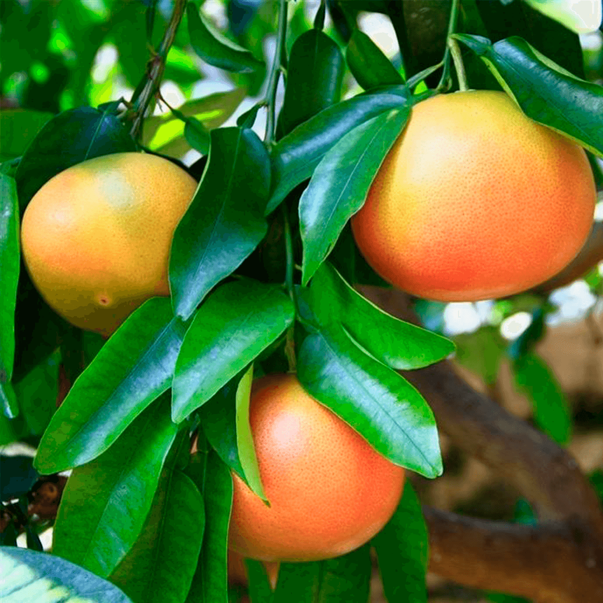 Fruto grande de piel amarilla y pulpa rojiza, con sabor equilibrado entre dulce y ácido. Necesita sol pleno y suelos bien drenados.