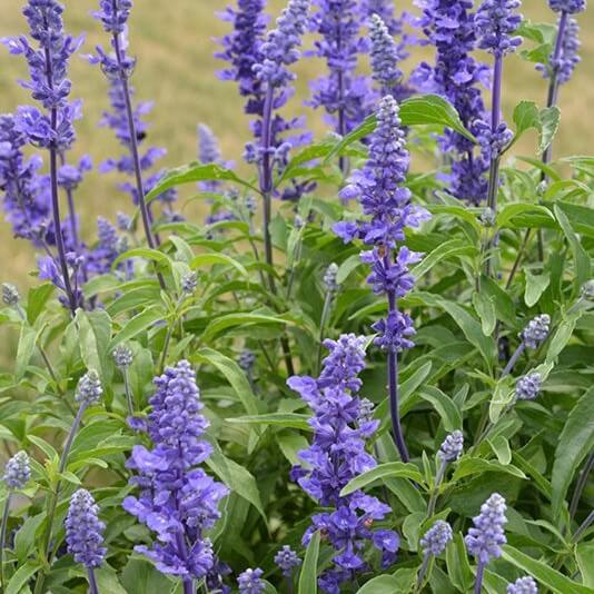 Planta perenne de floración prolongada con espigas de un intenso color azul violeta. Atrae polinizadores y es ideal para borduras y macetas.