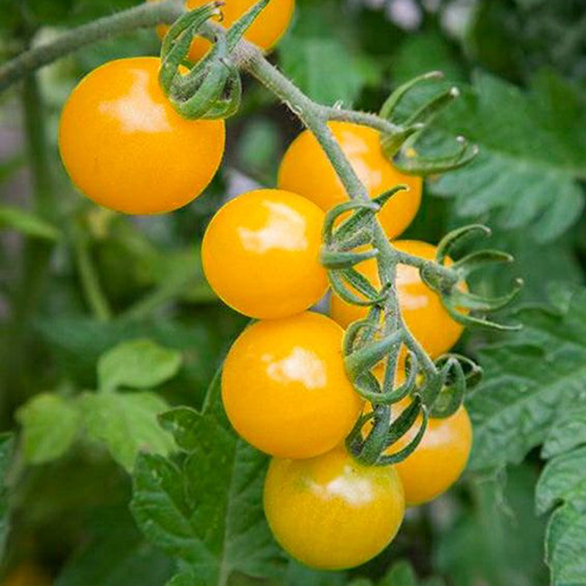 Pequeños frutos dulces y de color amarillo brillante. Planta de estación cálida con cosecha continua.
