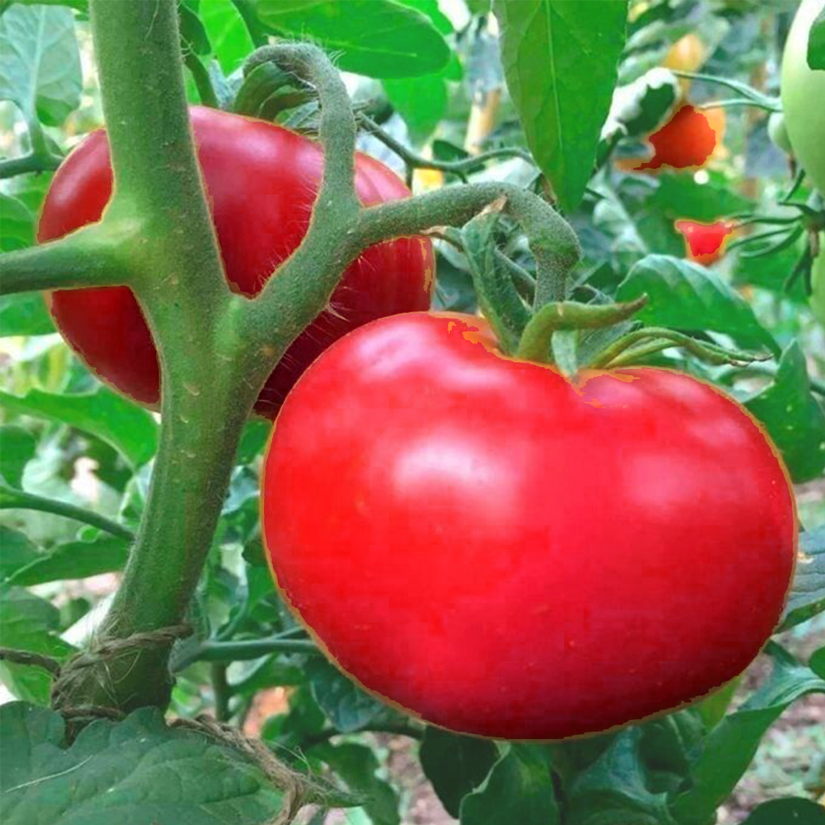 Fruto grande, redondo y ligeramente achatado. Necesita exposición al sol y suelo fértil.
